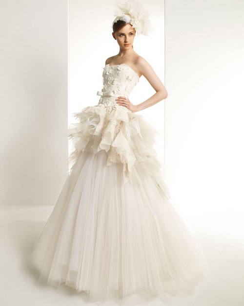 Za zimska vjenčanja prigodne tkanine su taft, teški sateni i slično. Obično su to modeli s podsuknjama, pa je u takvim modelima ujedno toplije. Nemojte se opterećivati kaputima ili bundicama; bit će vam dovoljna malo deblja pašmina, tih par trenutaka dok ste u crkvi ili kod matičara neće vam biti hladno ni ako uzmete neki laganiji gornji dio.