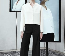 Na novim je kreacijama očit jedan nježniji, ženstveniji smjer koji je Wang učitao kreacijama, nekad uglata ramena dobila su fluidne linije, te je njegov rad sada usmjeren ka omekšavanju Balenciaga siluete. Žena je i dalje moćna, no njezin izričaj nešto je romantičniji. A za tu modernu romantiku Wangu nisu potrebne boje i pasteli, on je fino tumači u paleti bez pigmenata. Naglasak je i na šeširima, retro pokrivalima većih dimenzija, koja su dodatno ukrašena zanimljivim teksturama, kakve se nalaze i na cipelama.