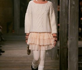 I tako je Karl u novu kolekciju još jednom uspješno upleo tradiciju, stil, udobnost i simbole ove francuske kuće koja vjerno slijedi svoje snove planski lansirajući svake sezone nešto prepoznatljivo i nosivo s vlastitim detaljima. Naravno, tu su i Chanel kostimi, no ovoga puta oni su rezultat posebne suradnje, naime, kuća Chanel je nedavno kupila tvornicu Barrie Knitwear u blizini škotske granice koja broji 180 radnika i ponosi se posebnim majstorima na ovom modnom području.