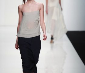 Izlet u svijet bež nijansi vidjeli smo kod mlade dizajnerice Pavle Aleksić, koja se oslonila na finu estetiku elegantne mode s početka sedamdesetih, te predlaže jednostavne krojeve u nijansama pudera i pijeska. Fashion.hr održava se još večeras i sutra, u 5. pavoljonu Zagrebačkog velesajma.