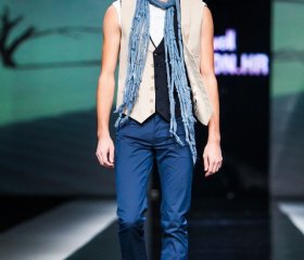 Status modnog eksperta pokazao je još jednom i Ivica Klarić za IK Studio, ovoga puta inspiriran beduinima i pješčanim dinama - njegove su bež i plave nijanse na pistu Fashion.hr-a donijele dašak fantastično nosive muške elegancije, gdje su se istaknuli trobojni sakoi s gumbima u više nijansi. Klarić se poigrao i kombinacijom hlača i dimija, te ih uspješno spojio u jedan novi muški odjevni predmet. Izuzetno pazi na detalje, što su prepoznali i njegovi brojni klijenti, pa će najbrže, kaže, prodat sakoe koji imaju neke neočekivane stilske momente. Iako nismo poput Talijana, i kod nas su, kaže Klarić, momci počeli zahtijevati nešto posebno i unikatno. Barem kad je o odijelima riječ.
