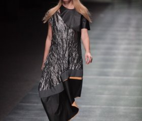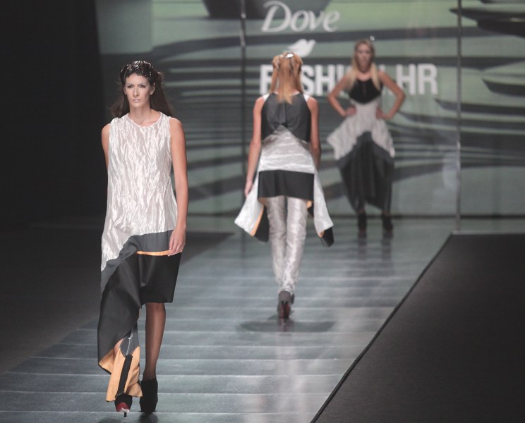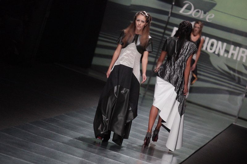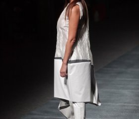 Igor Galaš i dalje se, kaže, poigrava tkaninama i kombiniranjem tekstura. – Ako ne eksperimentiram, ja ne radim korak naprijed – kaže ovaj nagrađivani dizajner koji se može pohvaliti i mnogim gostovanjima na stranim modnim manifestacijama. Ovoga puta to su obli krojevi koji, pod utjecajem gravitacije tvore fluidne oblike, ovoga puta od umjetne kože i drugih tehnološki obrađenih sjajnih, kompaktnih materijala. Boje: bijela i crna, naravno.
