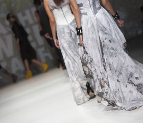 Ivana Popović, dugogodišnja ljubiteljica apstraktnih motiva, sinoć nas je na pisti Zagreb fashion weeka u zagrebačkom Hypo centru iznenadila jednostavnom crnom kolekcijom konkretnih haljina s pokojim mega volanom, tek toliko da naglasi i ženstvenost... Uživali smo u jednostavnim linijama opisanima u crnoj vuni Ivane Popović, baš kao i u flora & fauna patchwork radu prepoznatljivom za Anu Kujundžić, da bi nas do kraja razmazila londonska svita: brendovi Phannatiq i Tramp in disguise. Ti talentirani Londončani i njihovo tradicionalno seciranje mode kroz buntovni punk uvijek donose nešto svježe.