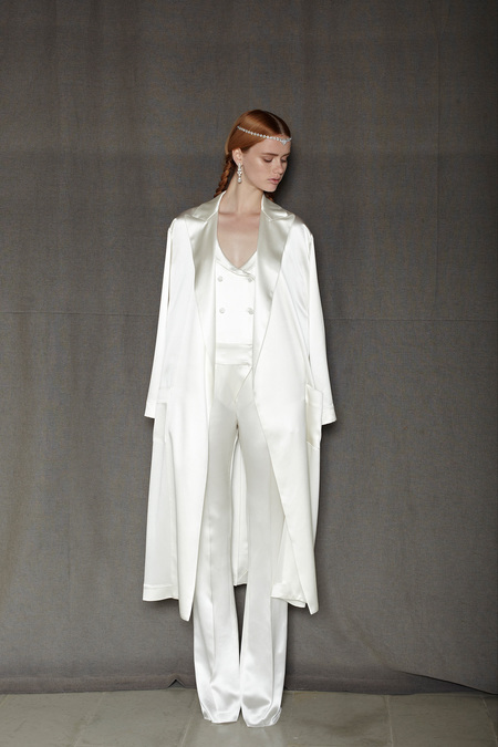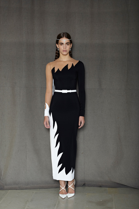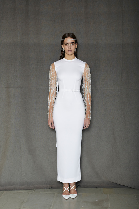 Alessandra Rich sljedeće ljeto vidi u snježno bijelom satenu, blagoj čipki i uskim, senzualnim krojevima. Ženstvena silueta nosi jednostavne krojeve nerijetko maxy duljine, a igra se dešava oko dekoleta gdje transparentne tkanine naglašavaju retro seksipil i blago ocrtavaju dekolte. Ova kuća, osnovana prije samo tri godine, svake sezone uspješno plasira svoju vintage usmjerenu modnu priču na svjetsku modnu scenu.