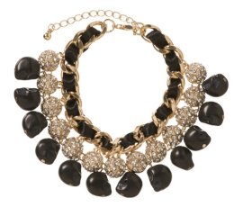 ...kosturske glave i ove nas sezone gledaju sa svih mogućih odjevnih komada i modnih dodataka, a najviše su zastupljene one ukrašene kristalima. Kosturko je odjenuo svoj najglamurozniji outfit i krenuo u noćnu avanturu. No, nisu samo večernje kreacije te koje nas oduševljavaju: običan t-shirt ima fancy ukras, koščice nam namiguju s bijelih i crnih površina. Tu su i neodoljive naušnice i ostali nakit koji stilu daje pankerski štih, te moderan buntovan moment. Utjecaj horror filmova na modu je pljusnuo strašno slatke uzorke koji, prevedeni u svijet mode, gube na ozbiljnosti. Ako ste istinska obožavateljica, izabrat ćete i badić s motivom kosturskih glava, te se opremiti sličnim plastičnim šarenim nakitom. A za one koji se ne žele previše istaknuti, tu su lagane marame i tanke tenisice...